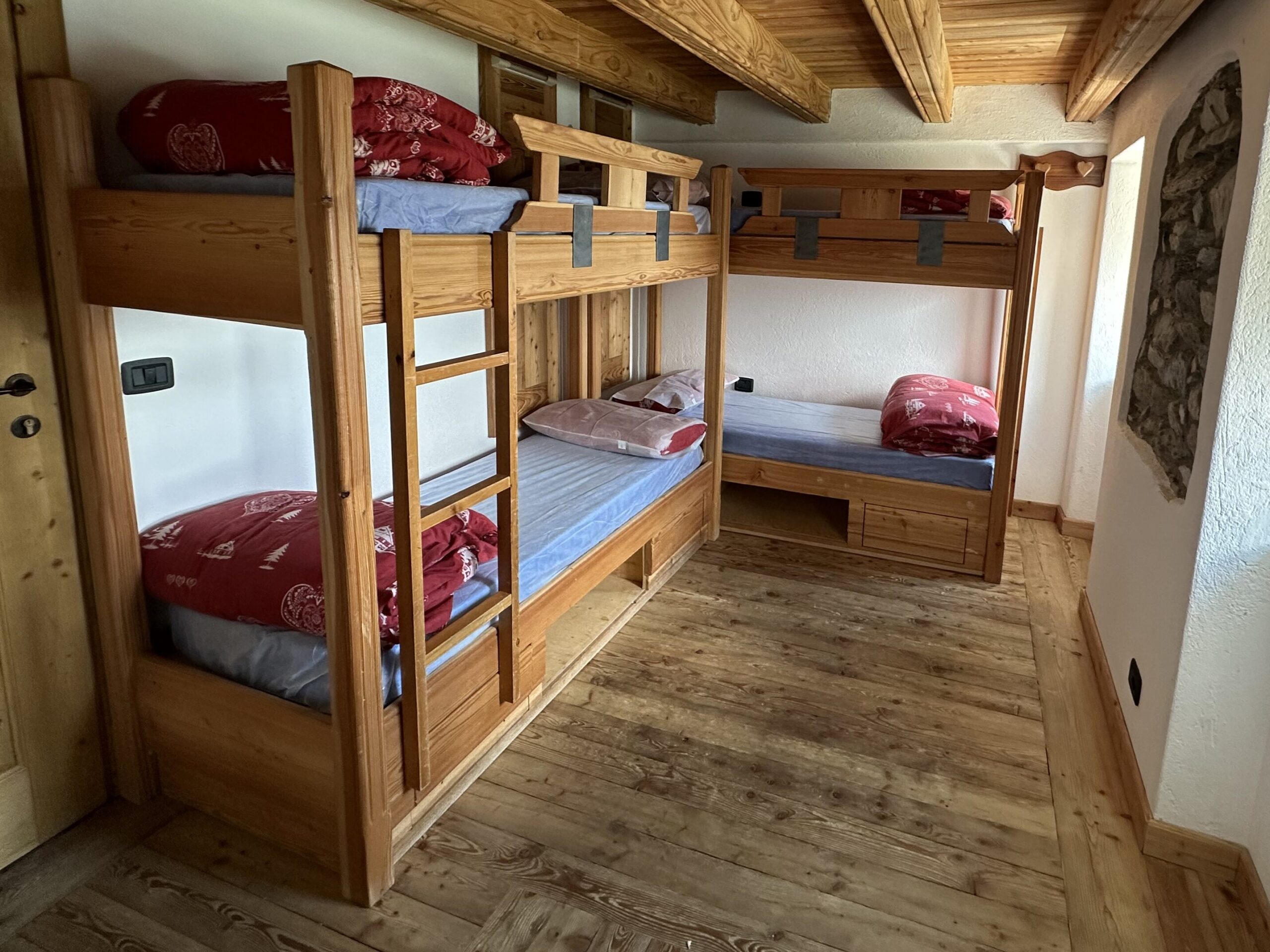 2 quadruple con letti a castello, 5 doppie (con letti a castello) e 1 matrimoniale.